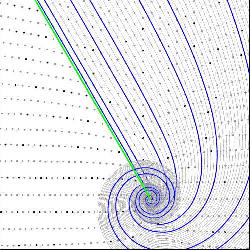 To draw the green line with Vortex, enter "ang 0" in the command window. To draw the blue curve, enter "s – 1".